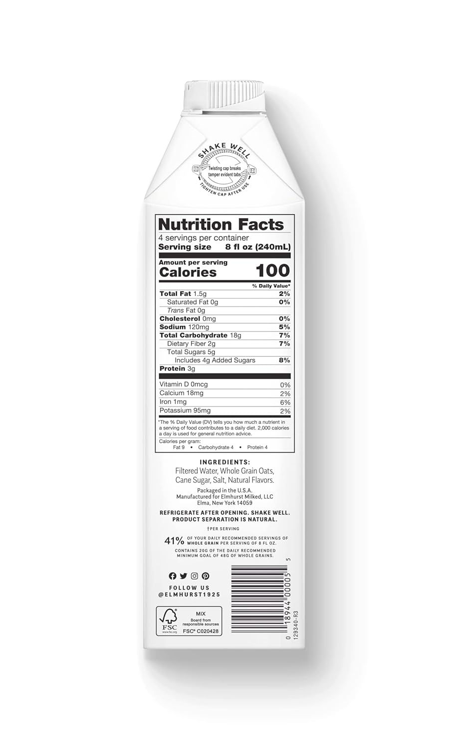 Elmhurst Unsweetened Oat Milk